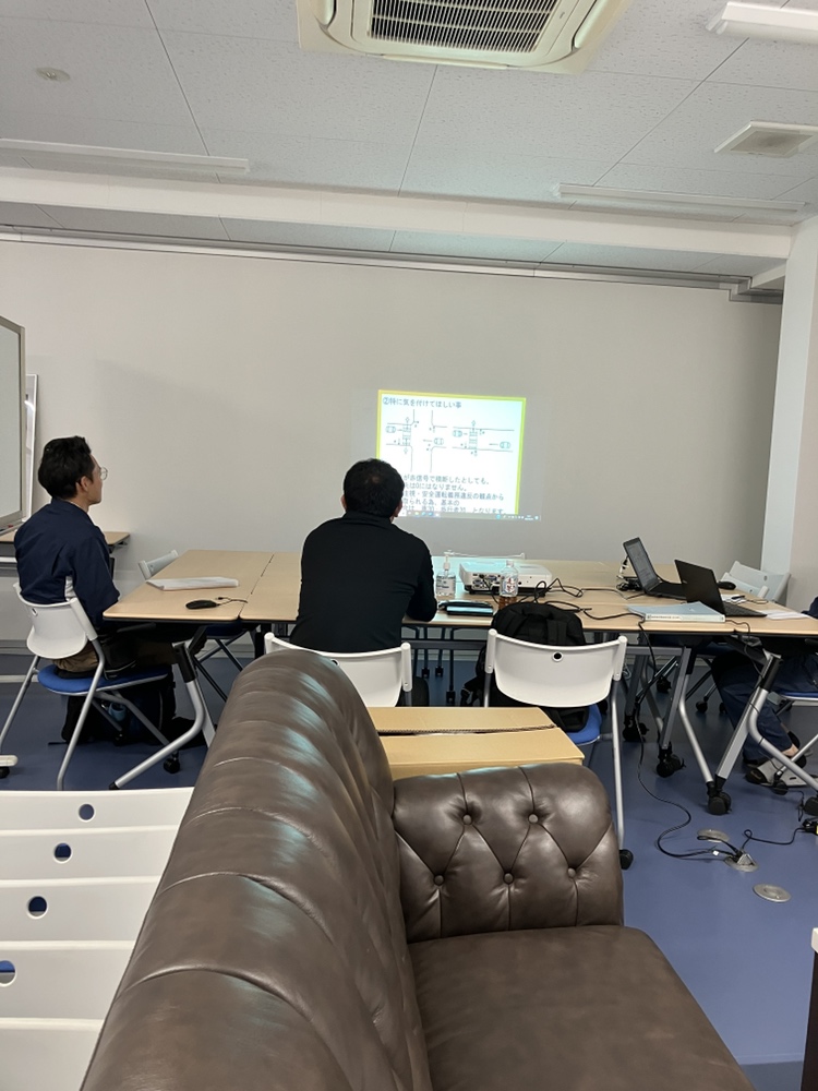 こんにちは!マルニ運輸です!本日は4月1日に入社された2名が座学2日目を受けています。